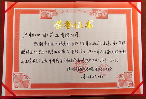 助力“衛(wèi)生三下鄉(xiāng)”活動,衛(wèi)材中國向青海省紅十字會捐贈價值約53萬元的藥品。