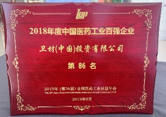 衛(wèi)材中國榮獲2018年度中國醫(yī)藥工業(yè)百強企業(yè)第86位。