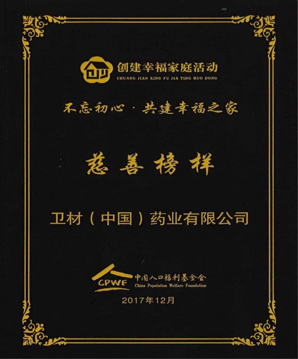 中國(guó)人口福利基金會(huì) “不忘初心 共建幸福之家-慈善榜樣”。