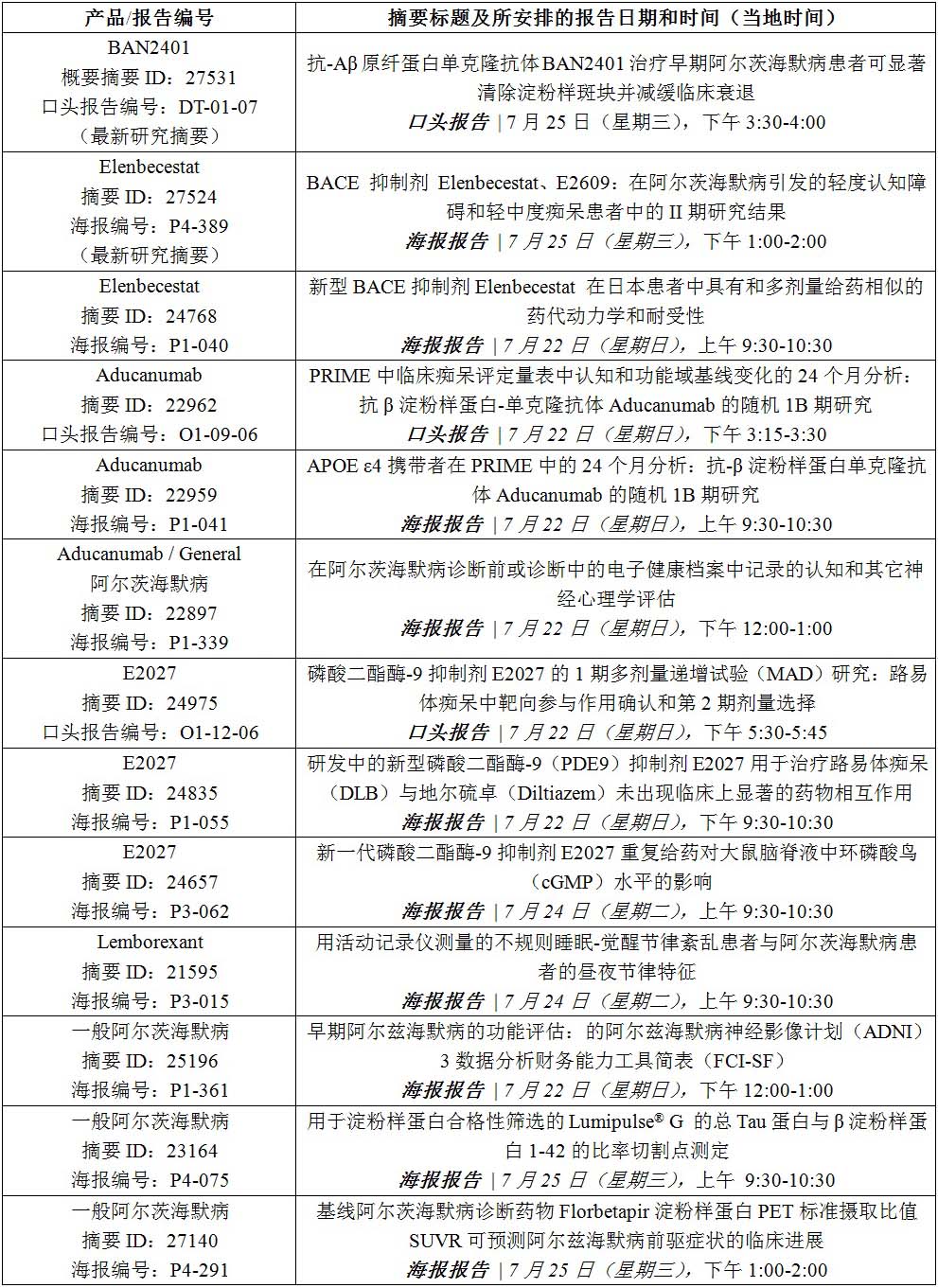 7月25日,在美國伊利諾伊州芝加哥舉行的2018年阿爾茨海默病協(xié)會國際會議(AAIC)上,作為會議DT-01″治療的最新進展”的一部分(演講編號:DT-01-07),衛(wèi)材株式會社(總部位于日本東京,現(xiàn)任社長為內藤晴夫,以下簡稱“衛(wèi)材”)和渤?。˙iogen)(納斯達克代碼: BIIB)(總部位于美國馬薩諸塞州劍橋,首席執(zhí)行官:Michel Vounatsos)宣布了BAN2401(抗淀粉樣蛋白β(Aβ)原纖維抗體)在856例早期阿爾茨海默病患者中的II期研究(201研究)的詳細結果。此摘要在AAIC上被接受為最新突破性口頭報告。